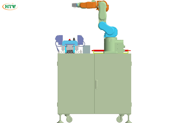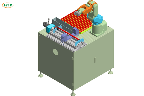 - Robot gắp sản phẩm từ tray hàng → đưa vào máy đo.